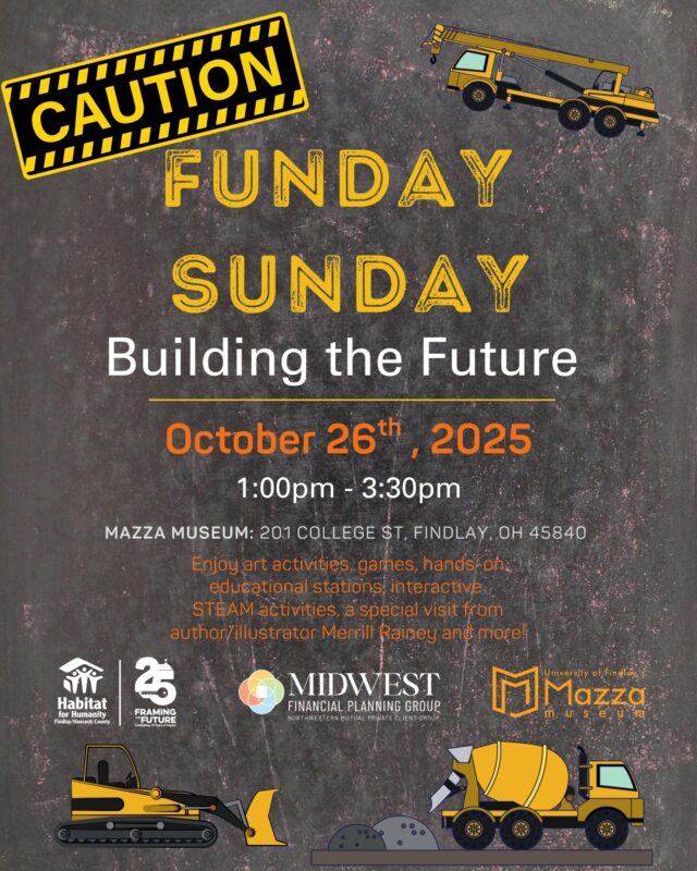 - Mazza Museum and Habitat for Humanity Team up for ‘Funday Sunday’ Oct. 26“Build Tomorrow with Habitat for Humanity” will be the hands-on theme of this year’s first “Funday Sunday” program at University of Findlay’s Mazza Museum. The October 26 program, which is free and open to the public, offers free art and […] The post Mazza Museum and Habitat for Humanity Team up for ‘Funday Sunday’ Oct. 26 appeared first on Findlay Newsroom.